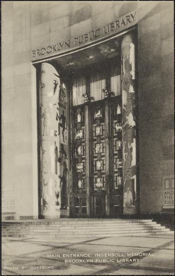 Grand Army Plaza and Eastern Parkway. Brooklyn Public Library. Detail of entrance doorway