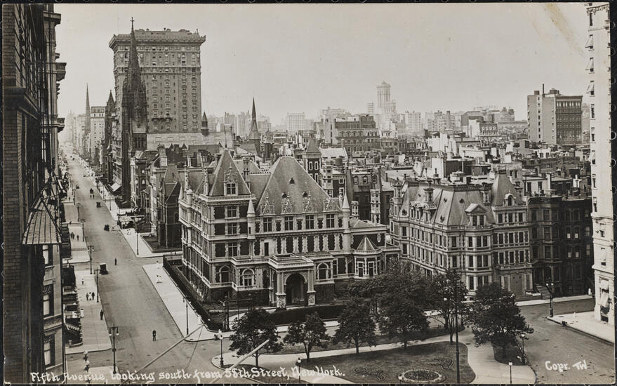 [Looking south on 5th Avenue toward Cornelius Vanderbilt mansion on West 58th Street]