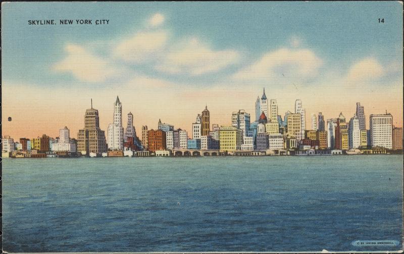 New York Skyline Showing U.S.S. North Dakota and Brooklyn Bridge.