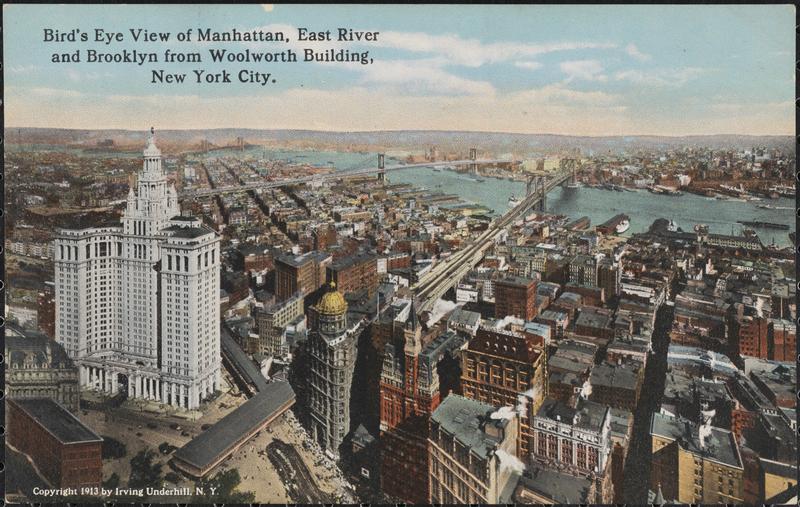 Bird's Eye View of Manhattan, East River and Brooklyn from Woolworth Building.