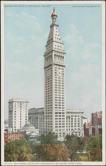 Metropolitan Life Insurance Building, New York. The Highest Building in the World.
