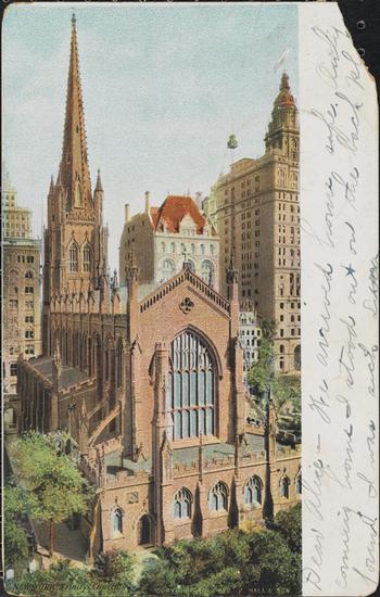 Sky Scrapers Overshadowing Trinity Church, New York.