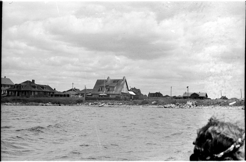 [Distant view of shore from waves.]