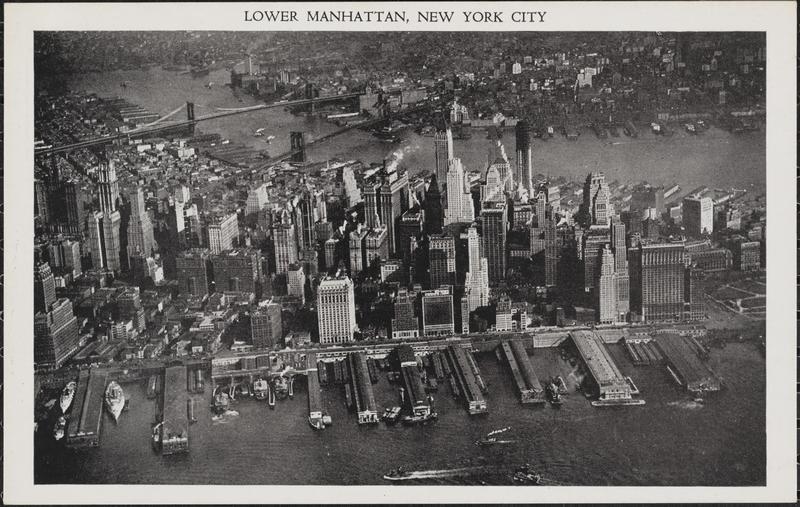 Lower New York, Brooklyn and Manhattan Bridges, from an Aeroplane.