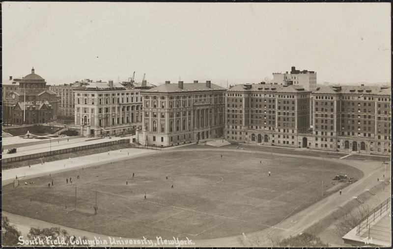 Library, Kent Hall, St. Paul's Chapel and Hamilton Hall from South Field, Columbia University, New York.