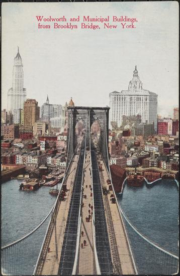 [Woolworth Tower and Municipal Building from Manhattan Bridge]