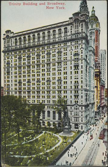 Trinity Church, Lower Broadway, and American Surety Building, New York.