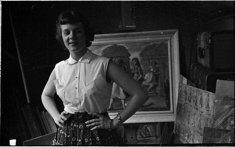 [Portrait of unidentified woman, Reginald Marsh with unidentified woman, and paintings by Reginald Marsh.]