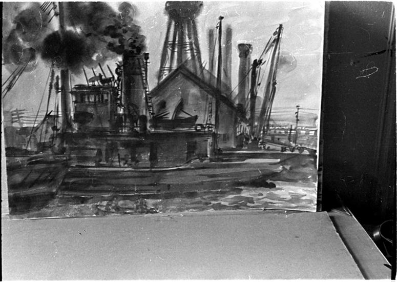 [Paintings of ships and waterfront scenes by Reginald Marsh.]