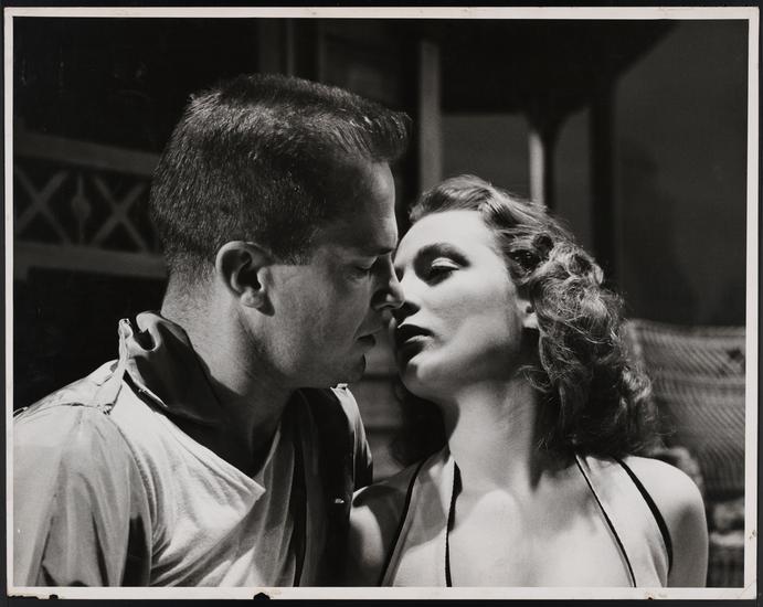 [Ralph Meeker as Hal Carter and Janice Rule as Madge Owens in "Picnic".]