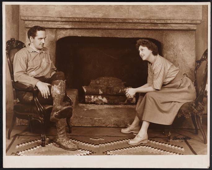 [Fredric March as Elliott Martin and Florence Eldridge as Carlotta Thatcher in "Hope for a Harvest".]