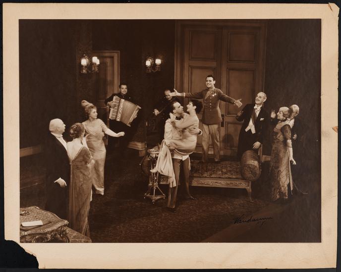 [Alfred Lunt as Rudolph Maximillian von Hapsburg, Lynn Fontanne as Elena and Henry Travers as Herr Krug in "Reunion in Vienna".]