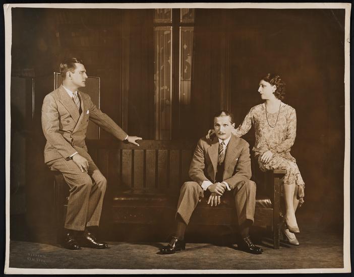 [Harry Bannister as Edmund Darrell, Ralph Morgan as Charles Marsden and Pauline Lord as Nina Leeds in the touring production of "Strange Interlude".]