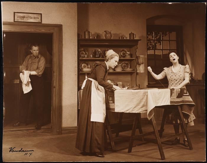 [Carl Benton Reid as Papa and Dorothy Sands as Mrs. Yoder in "Papa Is All".]