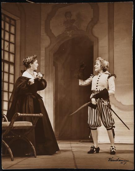 [Helen Hayes as Viola and Maurice Evans as Malvolio in "Twelfth Night".]