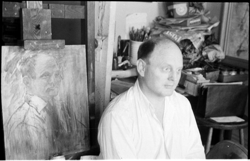 [Unidentified woman painting a portrait of Reginald Marsh.]