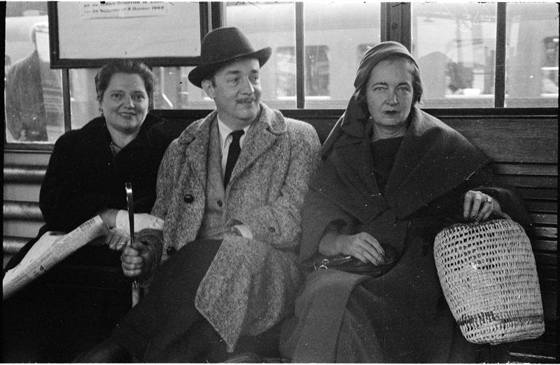[Felicia Marsh waiting with unidentified man and woman at train station.]