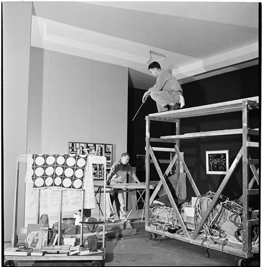 Museum of Modern Art [Staff members and art installations.]
