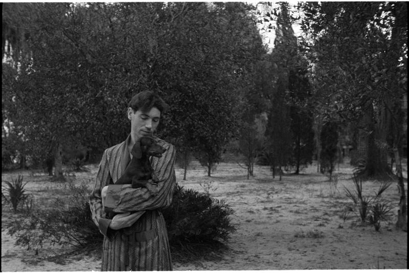 [Reginald Marsh and unidentified man surveying landscape outside of house.]
