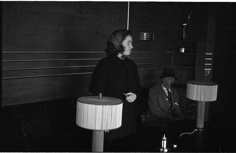 [Felicia Marsh and unidentified man at Fred Dana Marsh's "Battleship" house in Ormond Beach, Florida.]