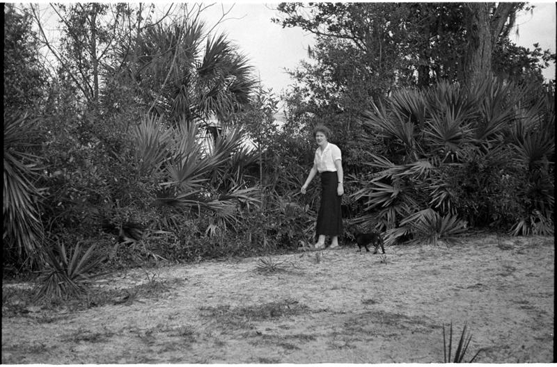 [Felicia Marsh sitting with unidentified woman and dog.]