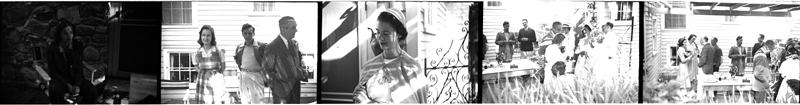 [Views of outdoor social gathering, the country, and a stalled car.]