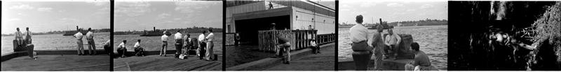 [Scenes of Felicia Marsh painting, waterfront, and portraits of a man.]