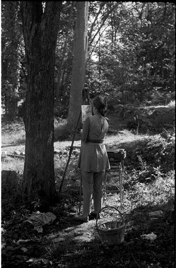 [Felicia Marsh painting outside and paintings by Reginald Marsh.]