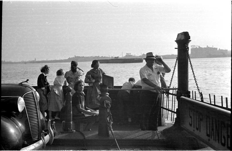 [Felicia Marsh and other passengers on ferryboat.]