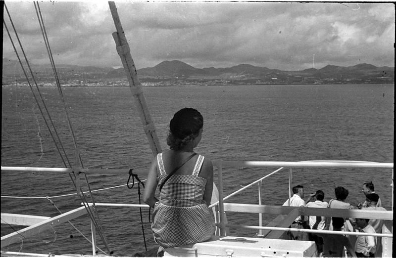 [Felicia Marsh sitting on sofa and reading newspaper.]