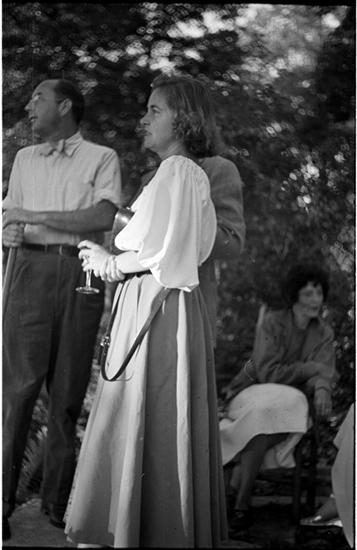 [Felicia Marsh with unidentified man at outdoor social gathering.]