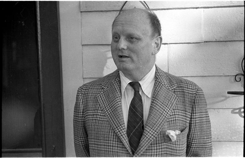 [Reginald Marsh sitting outside of Fred Dana Marsh's "Battleship" house in Ormond Beach, Florida.]
