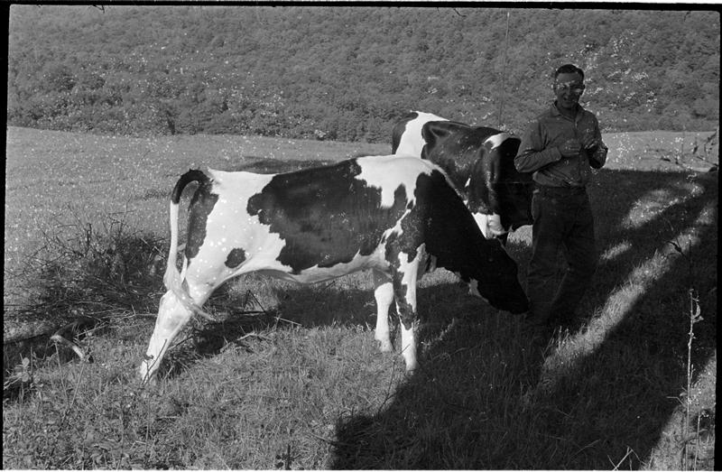 [Reginald and Felicia Marsh, unidentified people, and cows in pasture.]