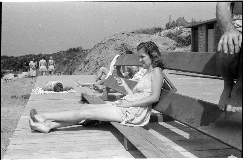 [Felicia Marsh sitting on sofa and reading newspaper.]