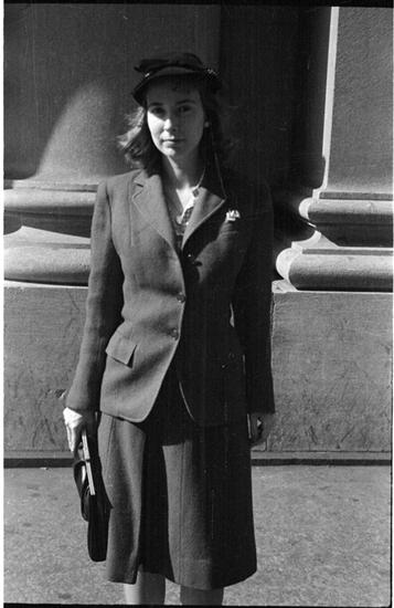 [Unidentified woman standing outside of Walgreen Drugs.]