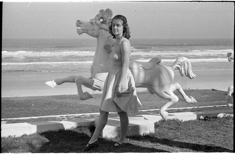 [Felicia Marsh on roof deck of Fred Dana Marsh's "Battleship" house in Ormond Beach, Florida.]