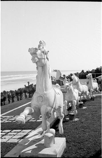 [Statue and fountain outside of Fred Dana Marsh's "Battleship" house in Ormond Beach, Florida.]