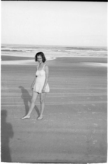 [Felicia Marsh on roof deck of Fred Dana Marsh's "Battleship" house in Ormond Beach, Florida.]