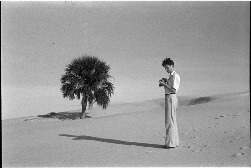 [Unidentified man walking in the desert.]
