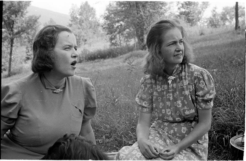 [Felicia Marsh and unidentified woman sitting outside.]