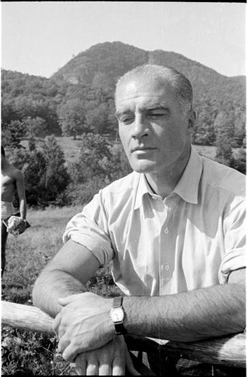 [Felicia Marsh leaning on fence with two unidentified men.]