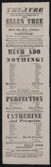 Last night but one of the engagement of Miss Ellen Tree. Wednesday evening, April 12, will be performed the comedy of "Much Ado About Nothing"
