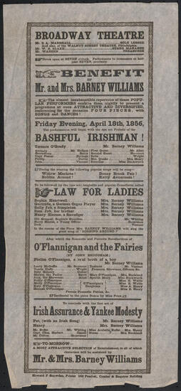 Tuesday evening, May 5, the Barney Williams Irish Relief benefit