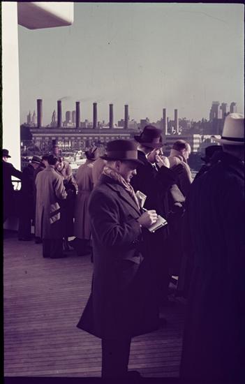 [Felicia Marsh looking out on Hudson River from deck of ship.]