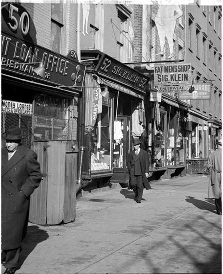 [Man walking past National Shoes store on 14th Street.]