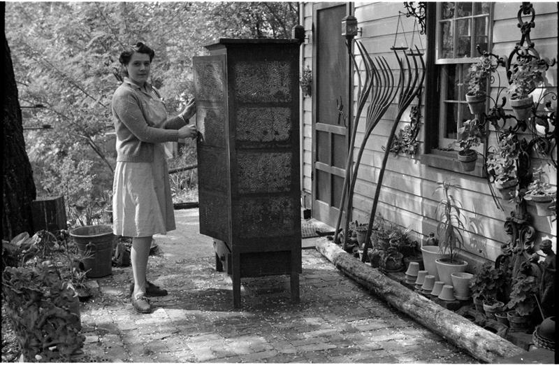 [Felicia Marsh with unidentified man and woman outside of house.]