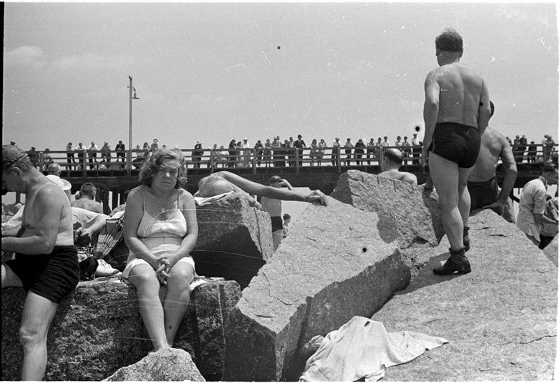 [People relaxing at Coney Island beach.]