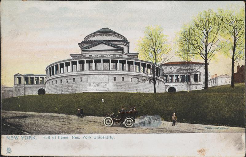 "Hall of Fame." N.Y. University colonnade surrounds the library. 150 panels for distinguished Americans.