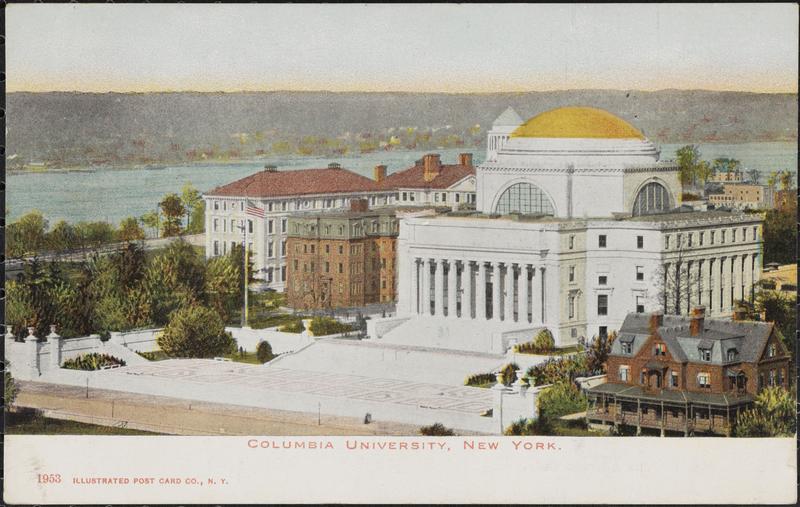 Library, Kent Hall, St. Paul's Chapel and Hamilton Hall from South Field, Columbia University, New York.
