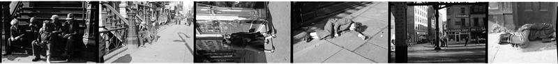 [Destitute men hanging out on sidewalk.]